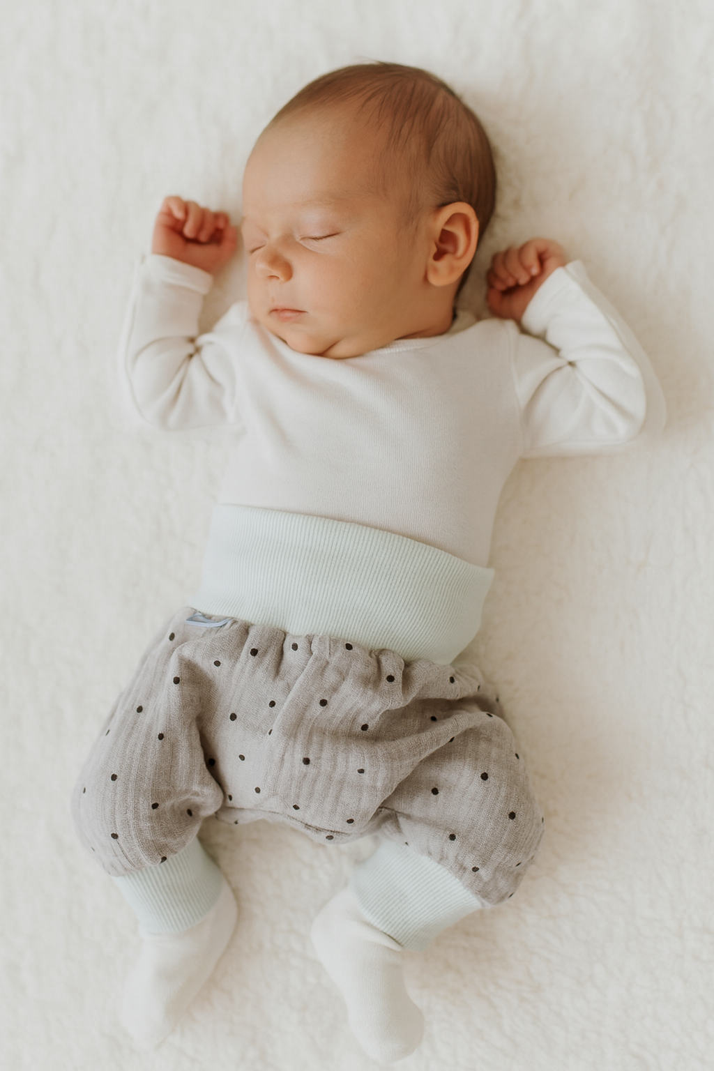 Der dünne Musselinstoff lässt die Beinchen schön atmen und bietet einen natürlichen Sonnenschutz.