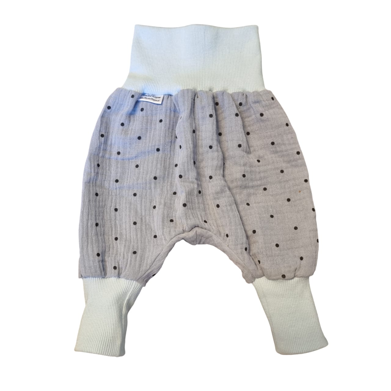 Diese bequeme Pumphose ist ein echtes Lieblingsteil für dein Baby. In Handarbeit gefertigt und mit niedlichen Punkten versehen, ist sie nicht nur stylisch, sondern auch besonders praktisch. Durch die weichen Bündchen am Bauch und an den Beinen sitzt die Hose sicher und bequem, ohne einzuengen – optimal für kleine Entdecker.